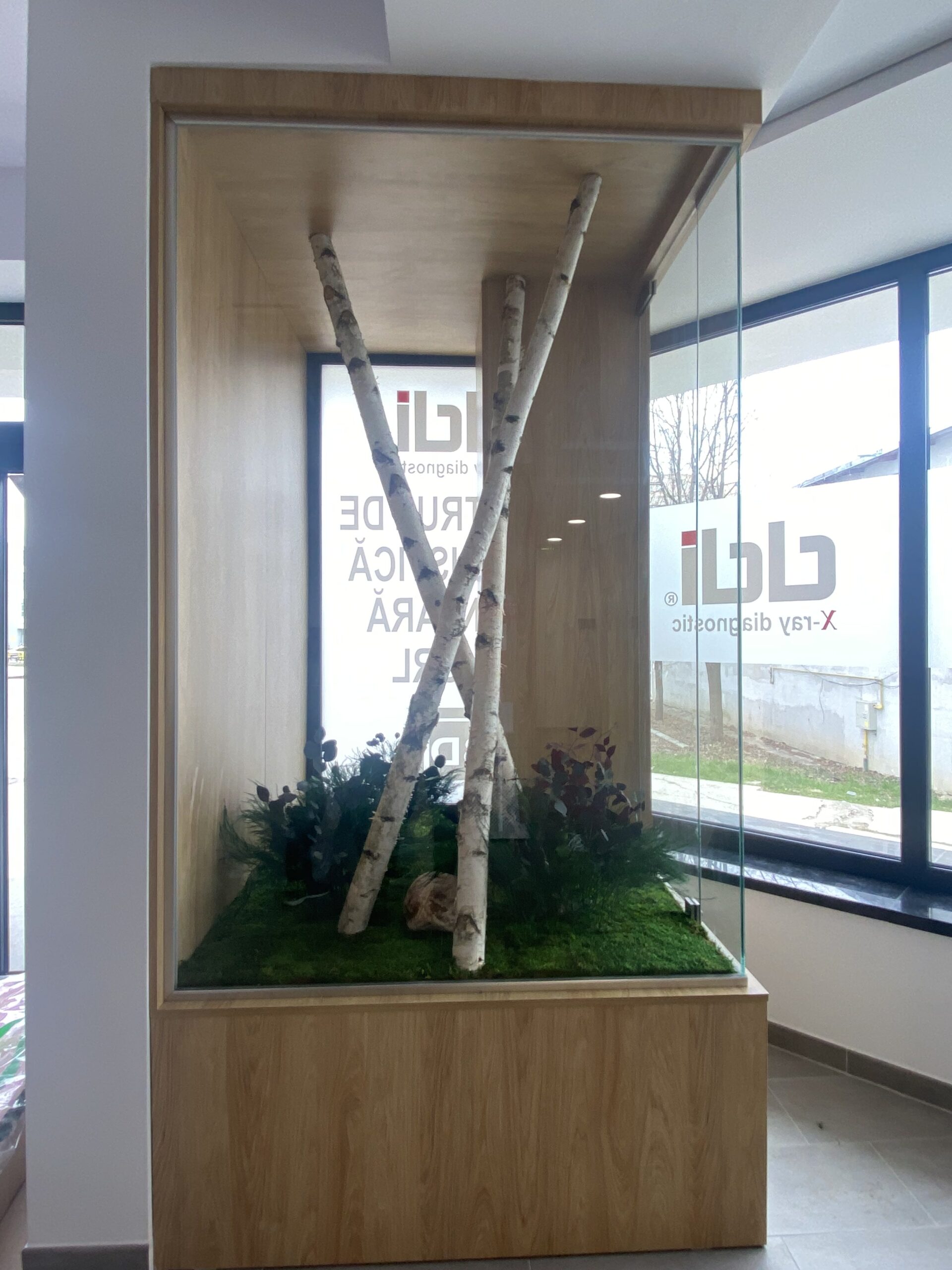 Pentru DDI din Bacău, am transformat spațiul într-o oază de inovație și eficiență, integrând licheni, mușchi și plante stabilizate în decorul interior. Atmosfera rezultată susține creativitatea și colaborarea în acest mediu dedicat dezvoltării tehnologice și inovației. Prin design-ul nostru inovator, am contribuit la crearea unei ambianțe inspirate și moderne, care să stimuleze productivitatea și inovația în fiecare aspect al activității.